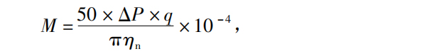 其中:M為輸入扭矩(工作扭矩),Nm;△P為泵出入口壓差,MPa;ηn為熔體泵的機械效率;q為泵的排量,即齒輪泵每轉排出的熔體質量。